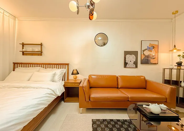 Yongsan, Haebangchon, Gyeongridan-Gil, Namsan Tower, Itaewon, Seoul Station, Han River apartment is nestled in the Yongsan-Gu district, an 8-minute walk from the restaurant Cafe Huamdong.